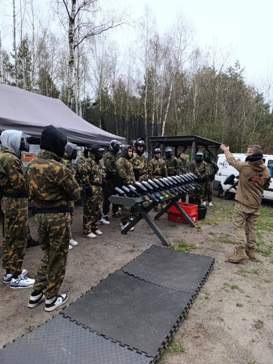 Po krótkim szkoleniu i wyposażeniu w kombinezony, maski oraz markery uczniowie stanęli do rywalizacji w dwóch drużynach.