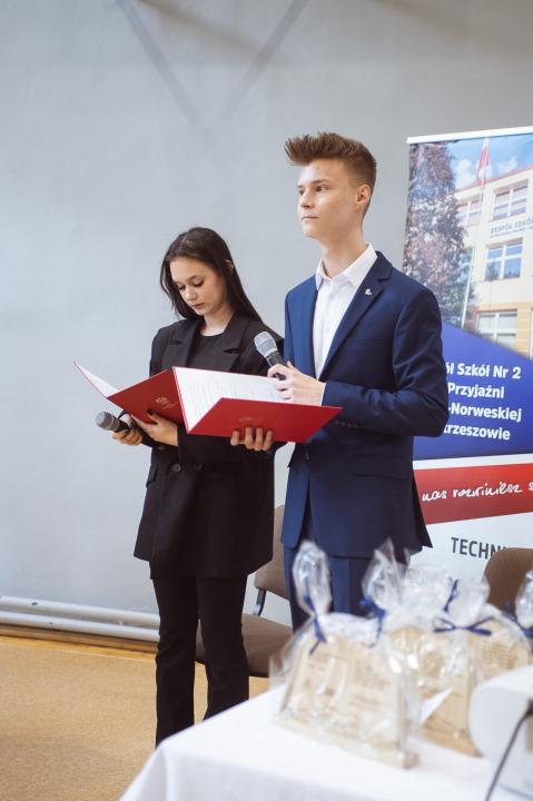 Całość sprawnie poprowadzili uczniowie naszej szkoły i radni Rady Młodzieżowej Mateusz Smorawski i Roksana Nasiadek.