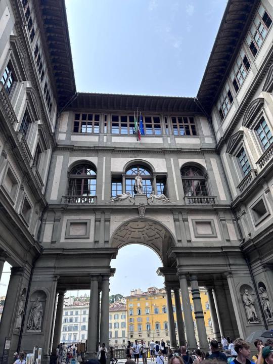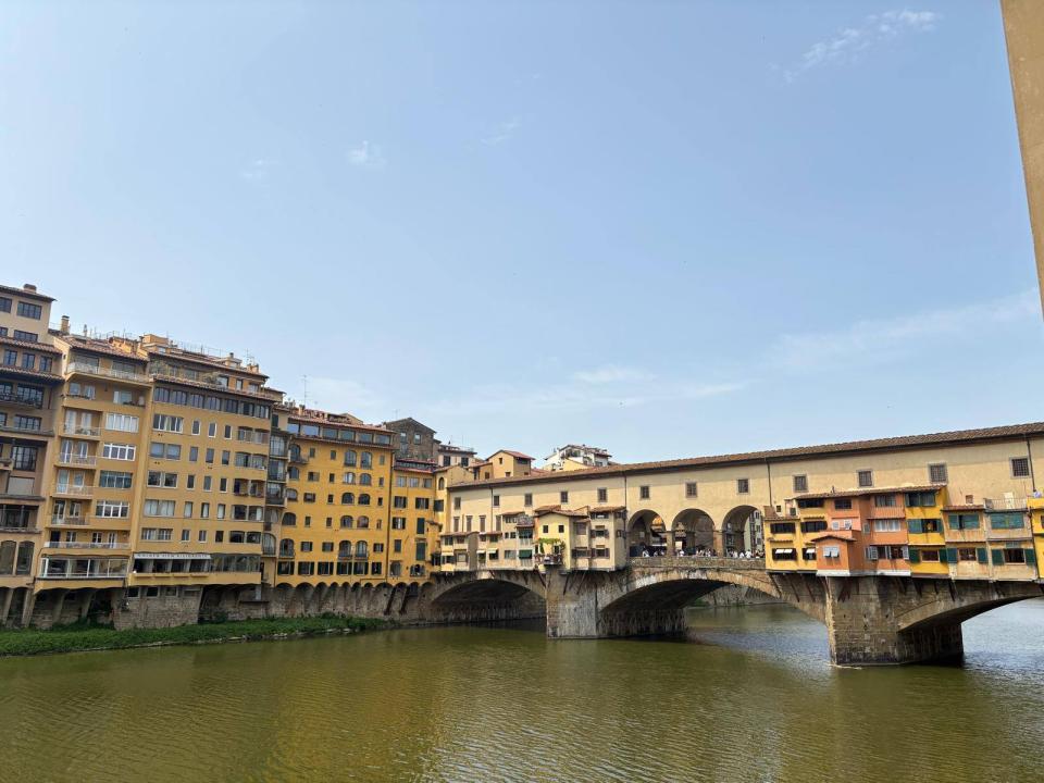 Spacerując, dotarliśmy do Ponte Vecchio jedynego mostu we Florencji, który przetrwał II wojnę światową. Most zaskoczył nas rzędem sklepików jubilerskich i niezwykłą atmosferą – zupełnie inny niż to, co widzieliśmy wcześniej.